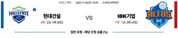 11월 4일 V리그 여자 현대건설 vs IBK기업