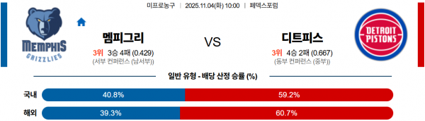 11월 4일 NBA 멤피그리 vs 디트피스