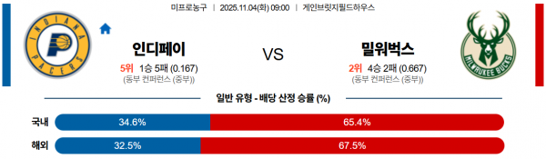 11월 4일 NBA 인디페이 vs 밀워벅스
