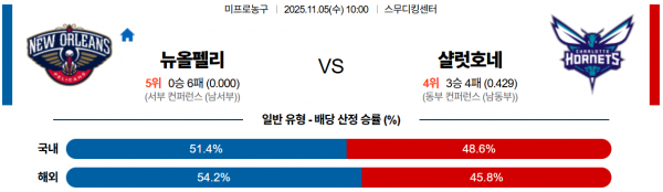 11월 5일 NBA 뉴올펠리 vs 샬럿호네