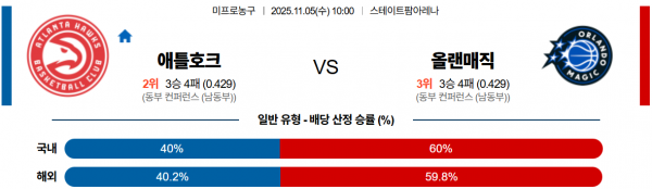 11월 5일 NBA 애틀호크 vs 올랜매직