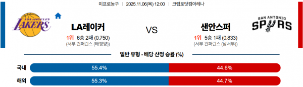11월 6일 NBA LA레이커 vs 샌안스퍼