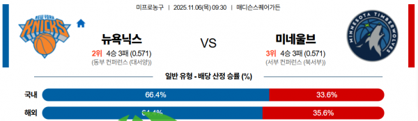 11월 6일 NBA 뉴욕닉스 vs 미네울브