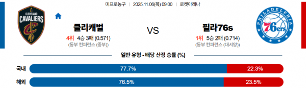 11월 6일 NBA 클리캐벌 vs 필라76s