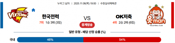 11월 6일 V리그 남자 한국전력 vs OK저축