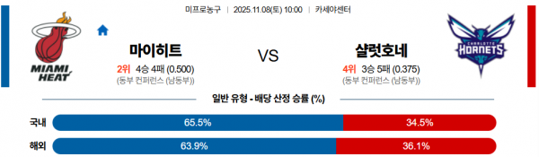 11월 8일 NBA 마이히트 vs 샬럿호네