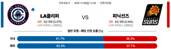 11월 9일 NBA LA클리퍼 vs 피닉선즈
