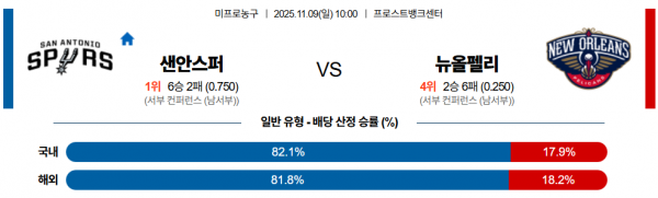 11월 9일 NBA 샌안스퍼 vs 뉴올펠리