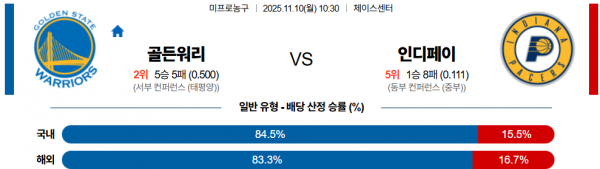 # 홈팀 : 골든스테이트 워리어스(5승5패)