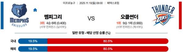 11월 10일 NBA 멤피그리 vs 오클썬더