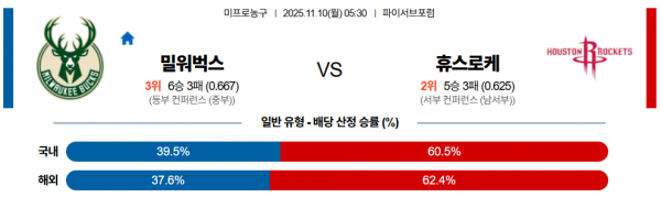 11월 10일 NBA 밀워벅스 vs 휴스로케