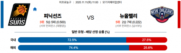 11월 11 NBA 피닉선즈 vs 뉴올펠리