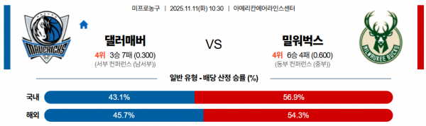 11월 11 NBA 댈러매버 vs 밀워벅스