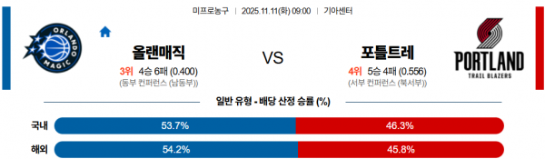 11월 11 NBA 올랜매직 vs 포틀트레