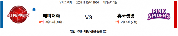 11월 13일 V리그 여자 페퍼저축 vs 흥국생명