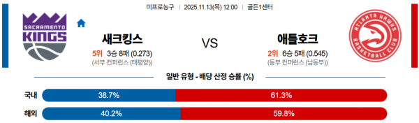 11월 13일 NBA 새크킹스 vs 애틀호크