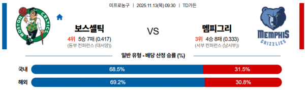 11월 13일 NBA 보스셀틱 vs 멤피그리
