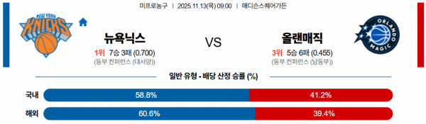 11월 13일 NBA 뉴욕닉스 vs 올랜매직