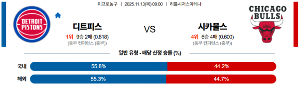 디트로이트는 케이드 커닝햄이 트리플더블을 기록하며 절정의 기량을 보여주고 있고, 데니스 젠킨스와 제일런 듀런이 각각 외곽과 골밑에서 안정적인 활약을 이어가고 있다. 특히 홈에서 4연승을 달리며 리바운드 우위를 기반으로 꾸준한 경기력을 유지 중이다. 반면, 시카고는 조쉬 기디의 결장 이후 공격 전개가 단조로워졌고, 4쿼터 득점 효율 저하가 반복되고 있다. 디트로이트 우세 속에 오버 가능성을 추천 한다.