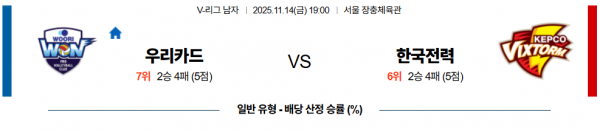 11월 14일 V리그 남자 우리카드 vs 한국전력