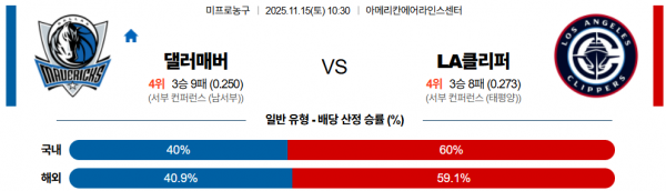 11월 15일 NBA 댈러매버 vs LA클리퍼