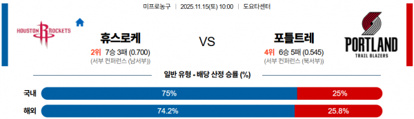11월 15일 NBA 휴스로케 vs 포틀트레