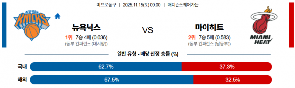 11월 15일 NBA 뉴욕닉스 vs 마이히트