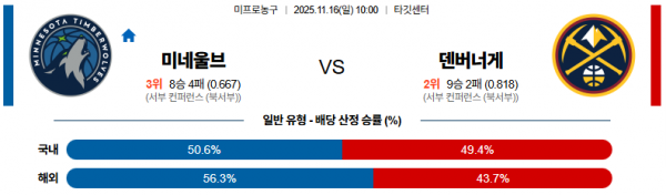 11월 16일 NBA 미네울브 vs 덴버너게