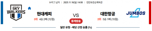 11월 16일 V리그 남자 현대캐피 vs 대한항공