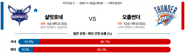 11월 16일 NBA 샬럿호네 vs 오클썬더