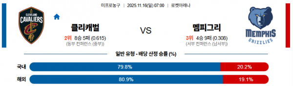11월 16일 NBA 클리캐벌 vs 멤피그리