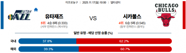 11월 17일 NBA 유타재즈 vs 시카불스