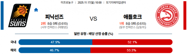 11월 17일 NBA 피닉선즈 vs 애틀호크