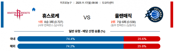 11월 17일 NBA 휴스로케 vs 올랜매직