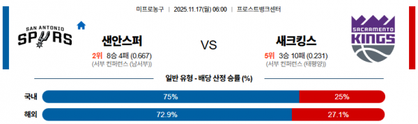 11월 17일 NBA 샌안스퍼 vs 새크킹스