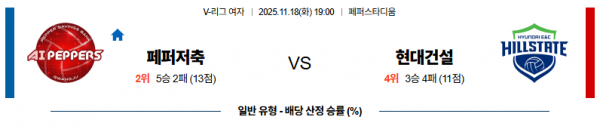 11월 18일 V리그 여자 페퍼저축 vs 현대건설