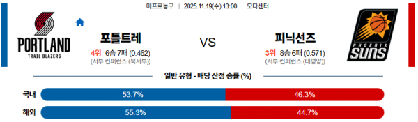 11월 19일 NBA 포틀트레 vs 피닉선즈