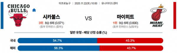 다음날 홈에서 워싱턴을 만나는 일정을 위해서 힘을 분산해야 하는 시카고는 최근 2연승으로 분위기를 끌어올렸고 포틀랜드전에서 122점을, 덴버전에서 130점을 기록하며 공격 생산력이 크게 개선됐다. 부체비치와 코비 화이트 중심의 득점 흐름이 안정적으로 이어지고 있고, 속공 전개에서 높은 효율을 보이며 홈에서 5승1패로 강세를 유지하고 있다. 마이애미 역시 최근 두 경기에서 110점, 115점을 넣으며 공격 템포가 살아났고 아데바요의 복귀로 인사이드 득점 옵션도 강화됐다. 양 팀 모두 최근 4쿼터 득점 폭발이 두드러지며 수비보다는 공격 기조가 강해 득점 페이스가 빠르게 형성될 가능성이 크다.