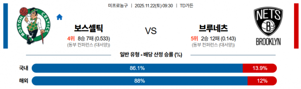 11월 22일 NBA 보스셀틱 vs 브루네츠