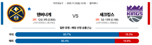 11월 23일 NBA 덴버너게 vs 새크킹스