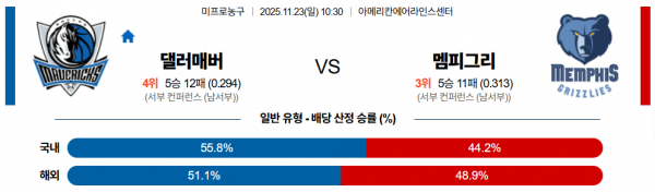 11월 23일 NBA 댈러매버 vs 멤피그리