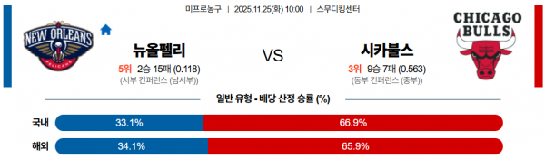 11월 25일 NBA 뉴올펠리 vs 시카불스