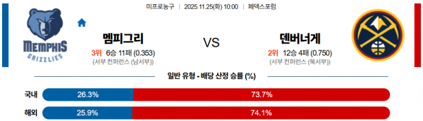 11월 25일 NBA 멤피그리 vs 덴버너게