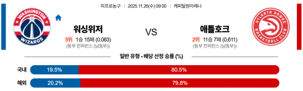 11월 26일 NBA 워싱위저 vs 애틀호크