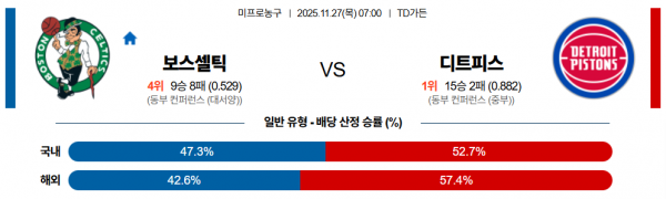 11월 27일 NBA 보스셀틱 vs 디트피스