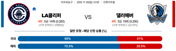11월 30일 NBA LA클리퍼 vs 댈러매버