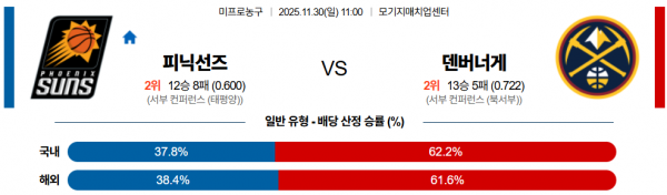 11월 30일 NBA 피닉선즈 vs 덴버너게