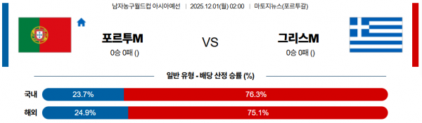 # 홈팀 : 포르투갈 FIBA 랭킹 47위 (1승)