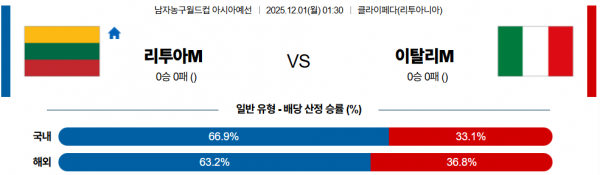 ◎ 배당을 노리는 선택 => 핸디캡 리투아니아 승리