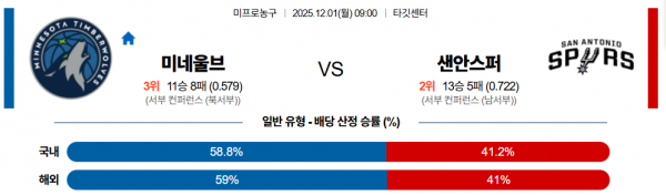 12월 1일 NBA 미네울브 vs 샌안스퍼